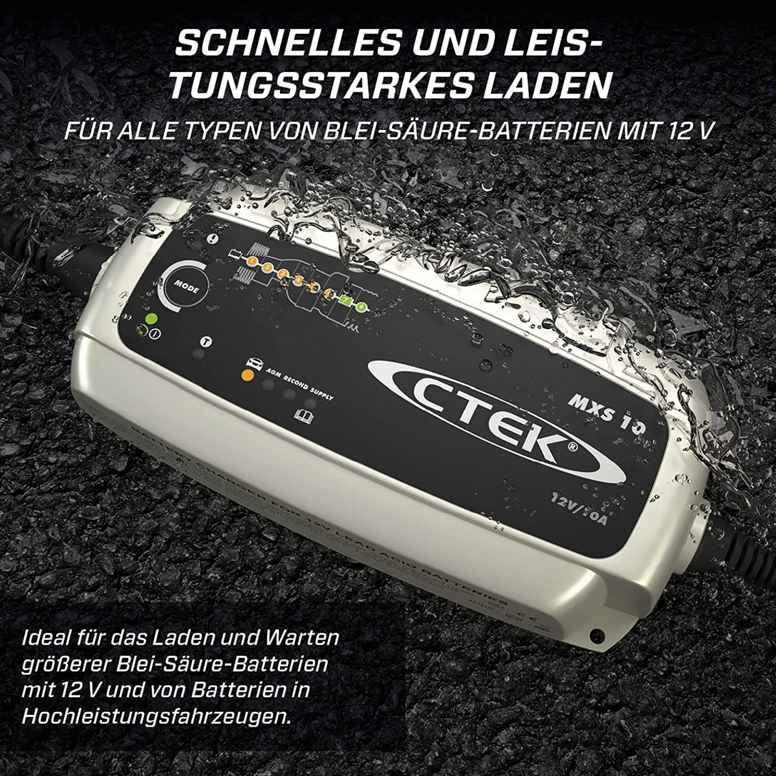 CTEK MXS 10 — мощный зарядник для крупных аккумуляторов от 20 до 200 Ач. Работает с батареями до 300 Ач в режиме поддержания. Целевая аудитория — владельцы больших внедорожников, микроавтобусов, грузовиков, катеров, кемперов, спецтехники.